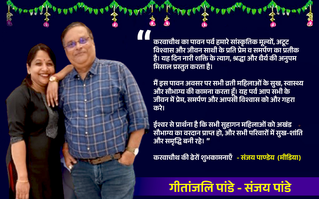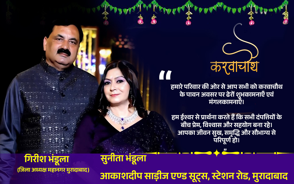 - करवाचौथ आस्था और विश्वास का प्रतीक : करवाचौथकरवा चौथ हिंदू भगवान शिव और देवी पार्वती की पूजा करने वाला एक वार्षिक एक दिवसीय त्योहार है। यह हिंदू माह कार्तिक की पूर्णिमा के चौथे दिन मनाया जाता है, जो आमतौर पर अक्टूबर में… Read more: करवाचौथ आस्था और विश्वास का प्रतीक : करवाचौथ